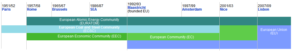 These three communities – collectively known as the 'European communities' – formed the basis of what is today the European Union. The EEC soon became by far the most important of the three and was eventually renamed simply 'the European Community' (EC).